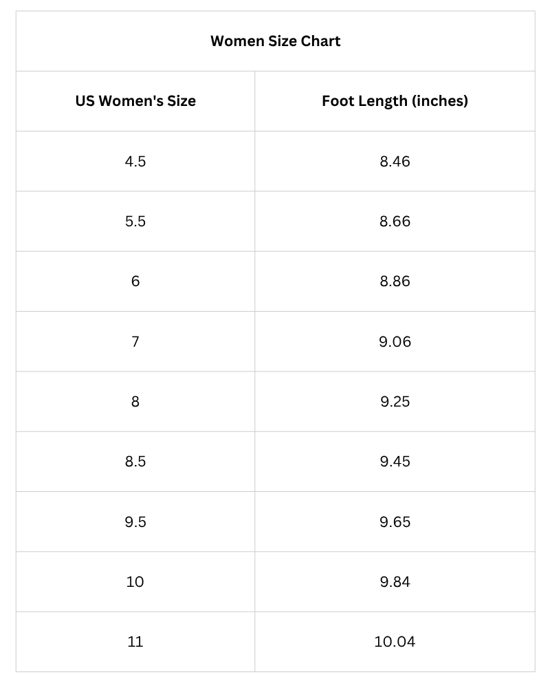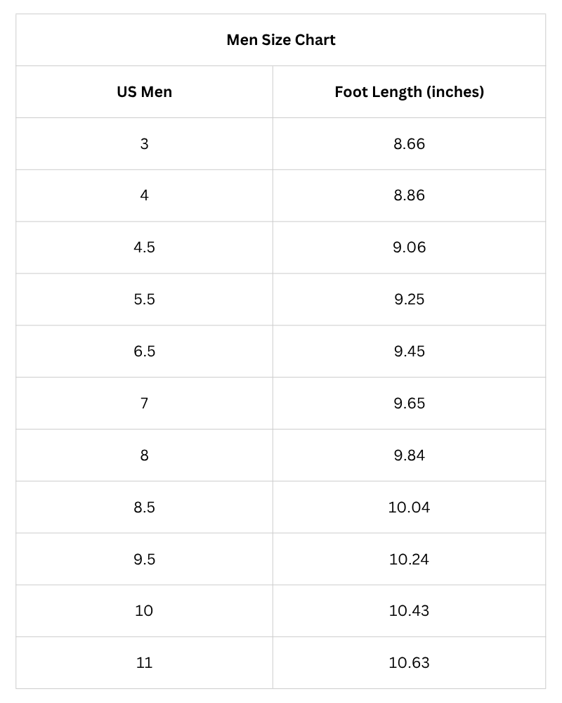 Size Chart (Inches):